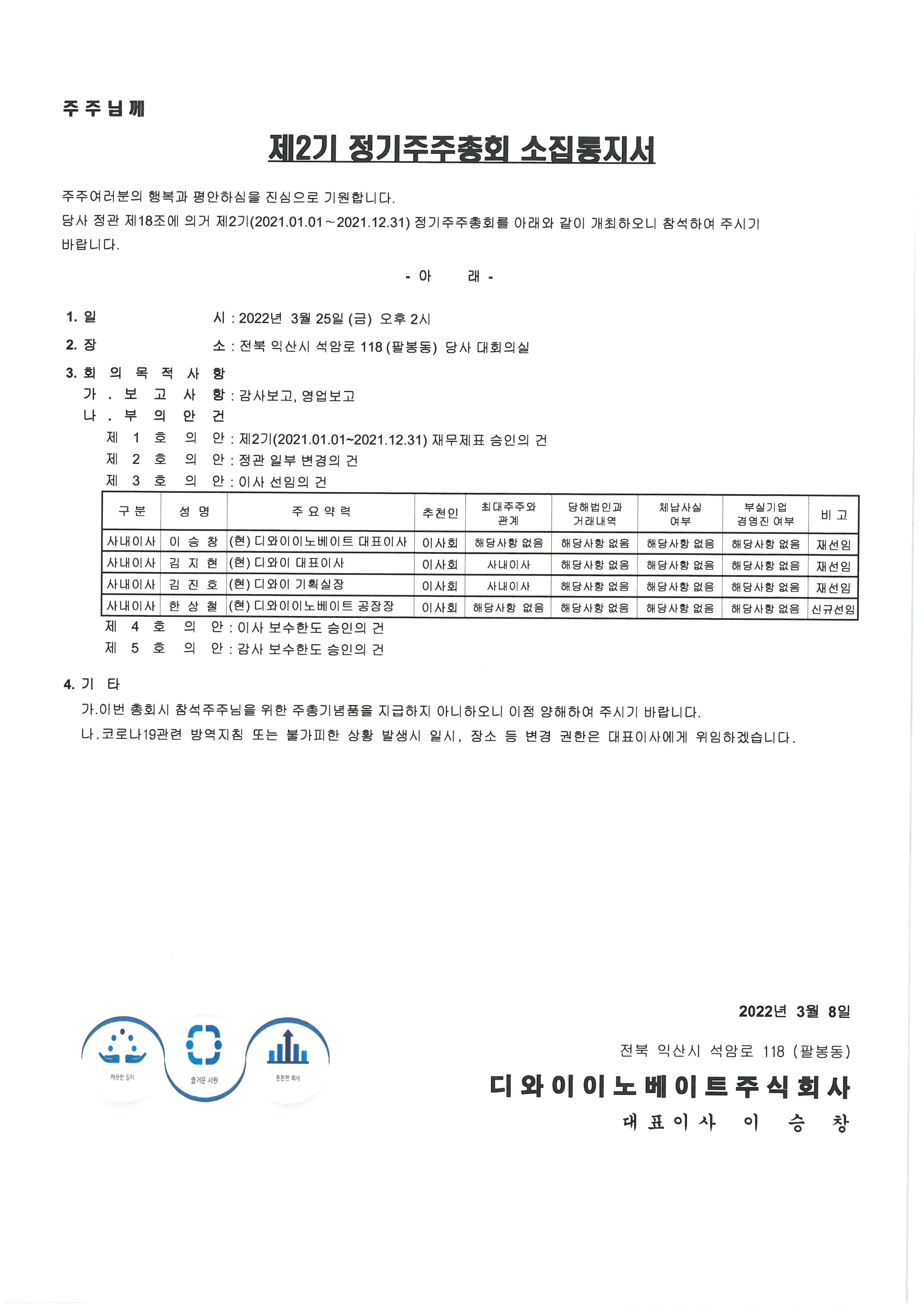 제2기 정기주주총회 소집공고