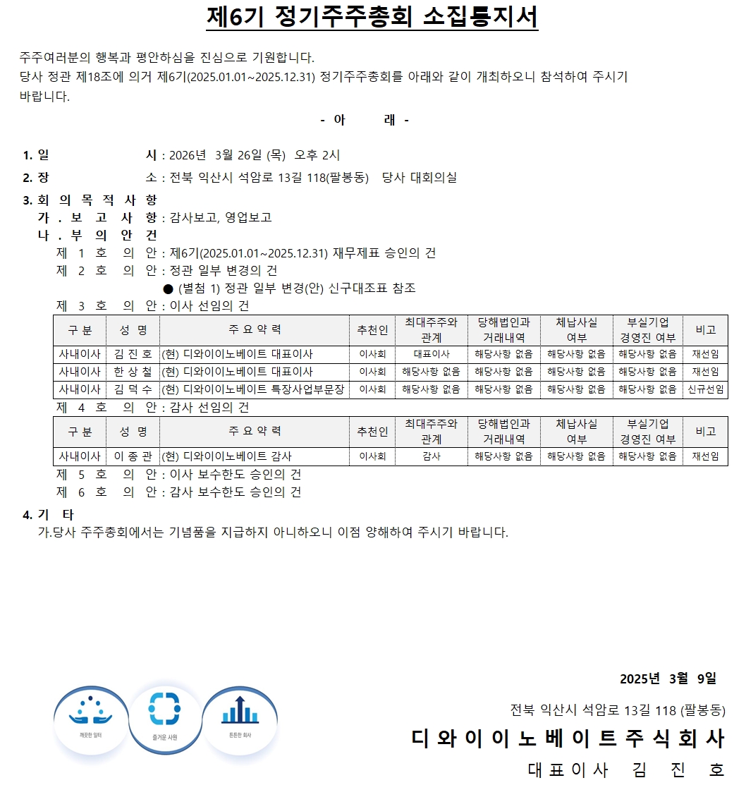 제6기 정기주주총회 소집공고